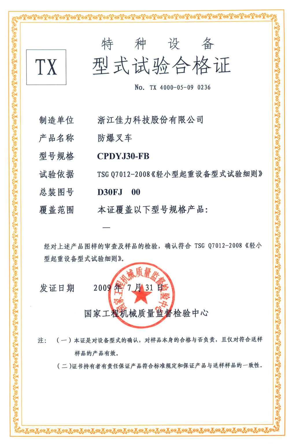 CPDYJ30型式試驗證書